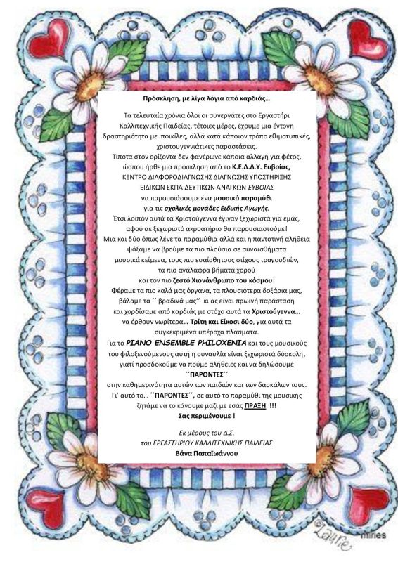 Εκ μέρους του Δ.Σ. του ΕΡΓΑΣΤΗΡΙΟΥ ΚΑΛΛΙΤΕΧΝΙΚΗΣ ΠΑΙΔΕΙΑΣ